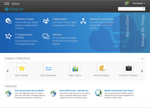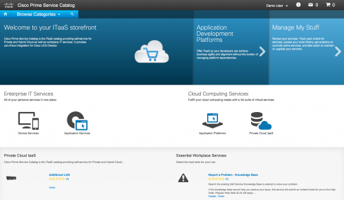 The first screenshot is actually how we consume Cisco IT internally. It doesn’t just provide a front door into ordering and managing data centre resources, it also allows me to see what tools and applications I am using with options to amend or cancel them.