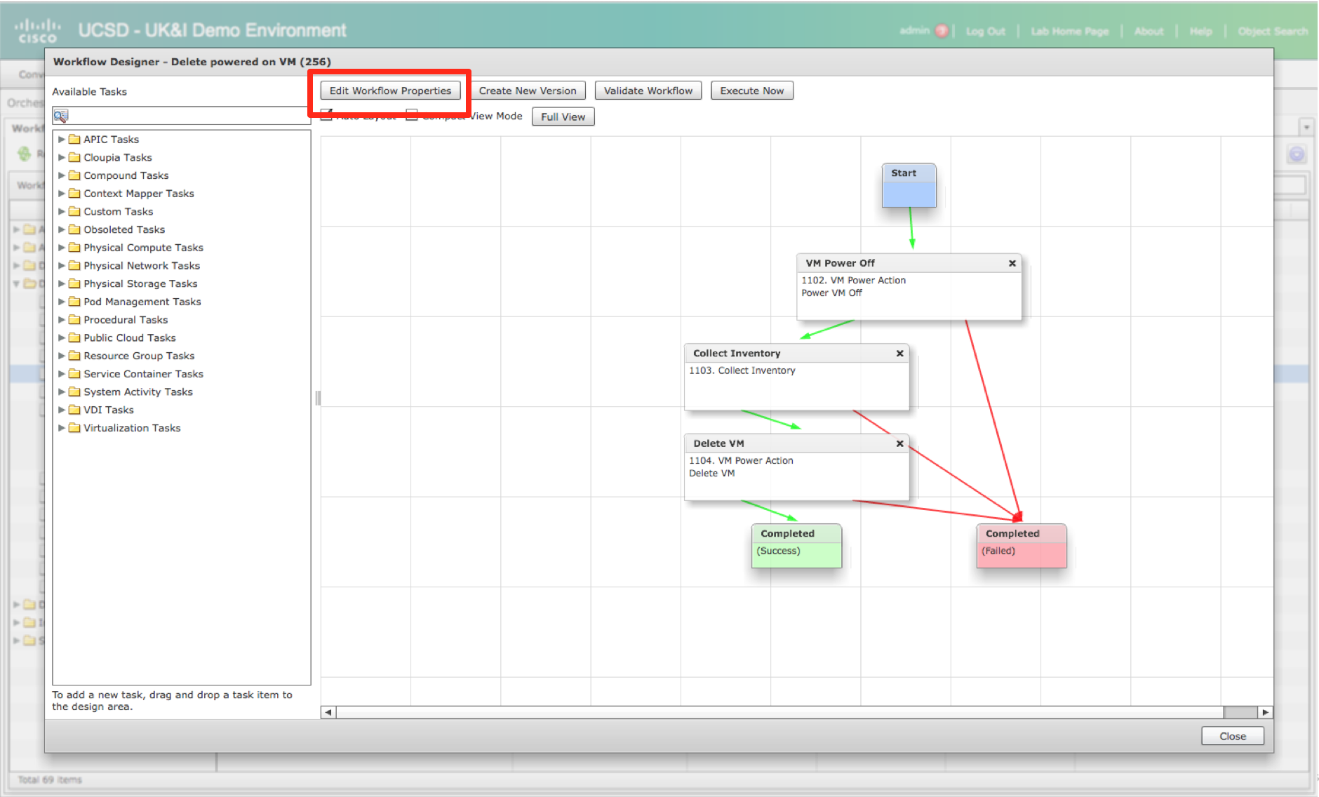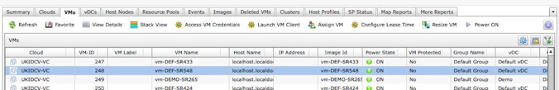 In UCS Director you get a number of context based options for day to day operations. An example of this is, either from end-user or admin view, the lifecycle management functions when browsing VM’s (Virtual>Compute>VMs);