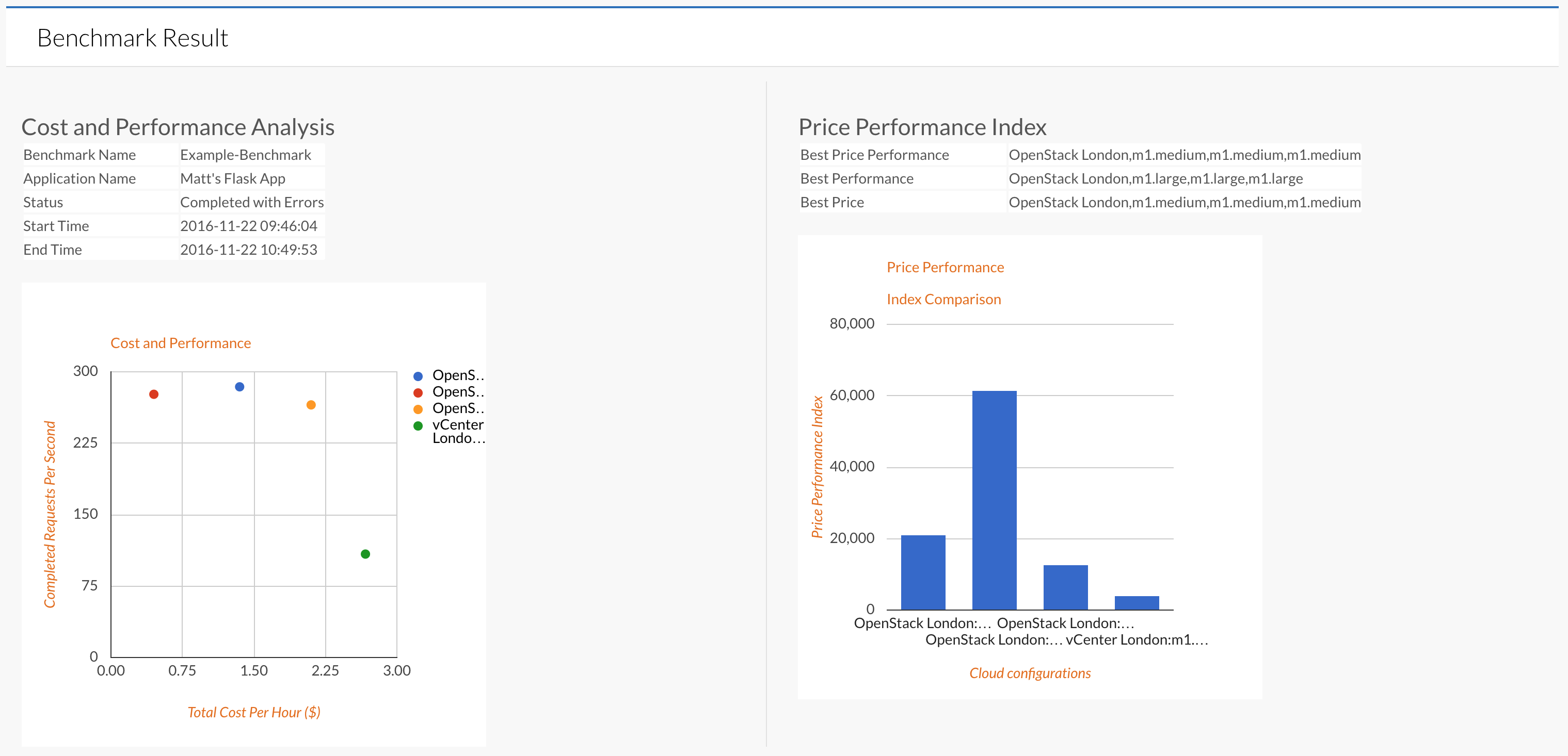 It is useful to understand how your application performs from an end-user perspective in different locations and/or server sizes. You can use JMeter tests to help simulate end-users. An example below is showing an application run in Openstack and in VMware in our lab as well as various Openstack instance sizes;