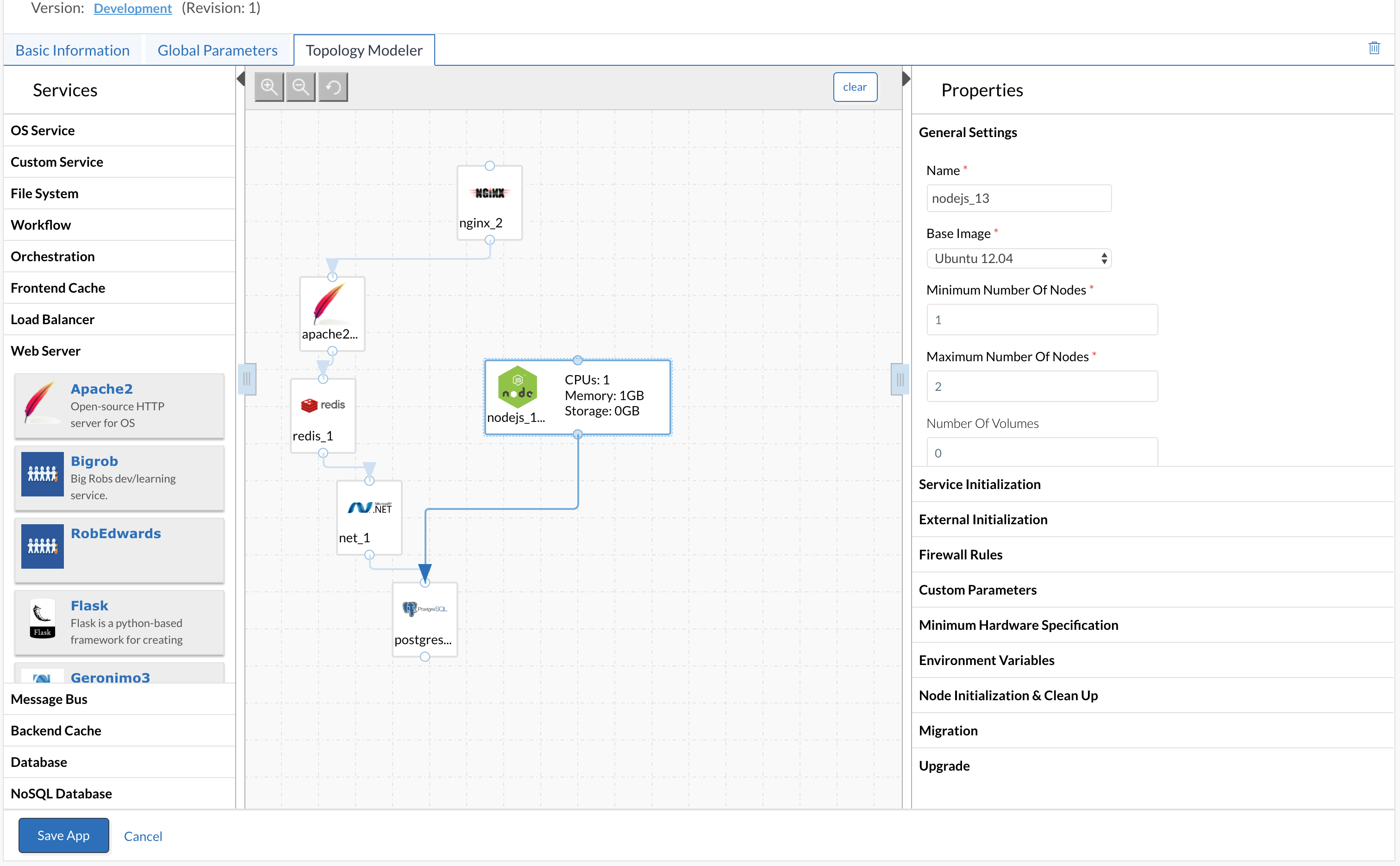 You model what an application looks like using what CloudCenter calls ‘services’. Applications can be single servers or more complex depending on what is needed.