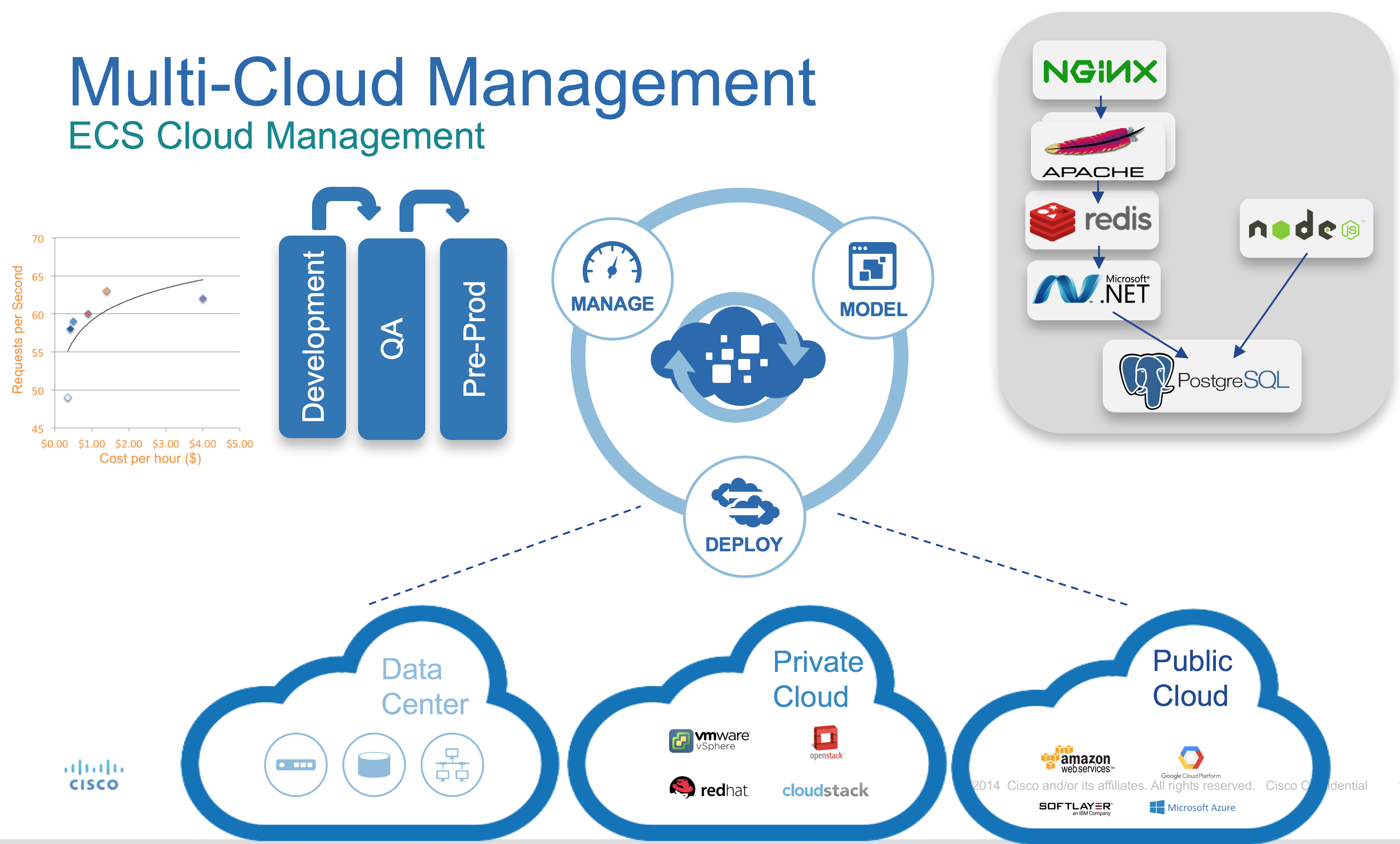 The mantra is ‘Model’, ‘Deploy’ and ‘Manage’ which means that you model your application once and then can constantly deploy to any supported destination (cloud or traditional on-prem virtualisation) and also provide visibility and management of your application.
