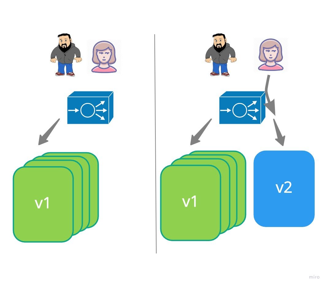 In some circumstances you may want to route a subset of users to new functionality. This is what is called A/B testing. Usually more around making business decisions rather than a deployment strategy however its a valid method nether the less.