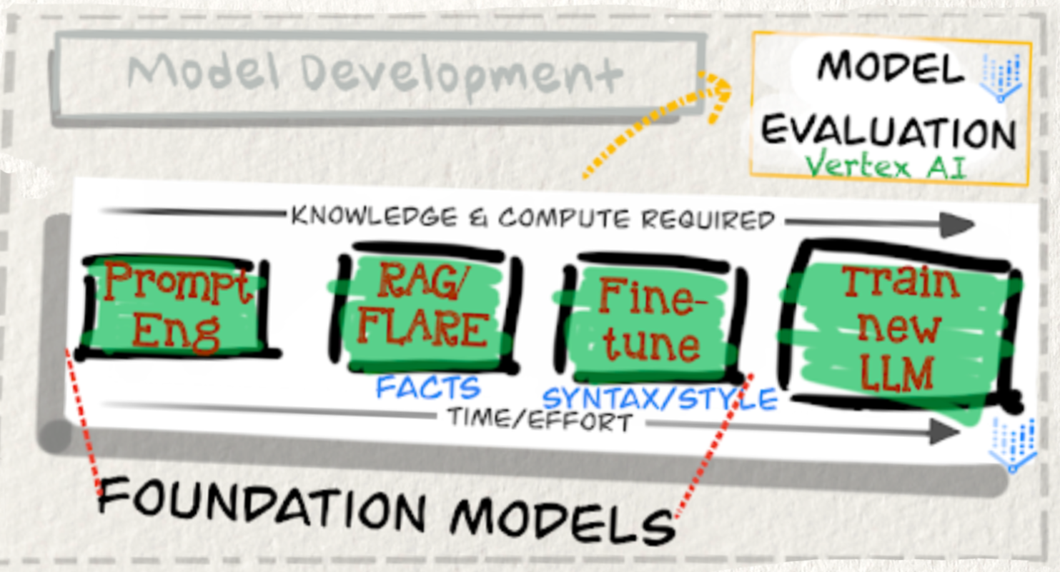 - Prompt Engineering: This is like dialing in your espresso machine for the perfect shot. We meticulously craft prompts, experimenting with parameters to guide the Gemini foundation models (or others) to produce the desired outputs. It’s about finding that sweet spot in your existing setup, making small adjustments to get a better result without fundamentally changing anything. Think of it as tweaking your brewing temperature and grind size — quick, effective, and readily adjustable. Prompt evaluation, often using tools within Vertex AI, helps us iterate and refine our “prompt recipes.”